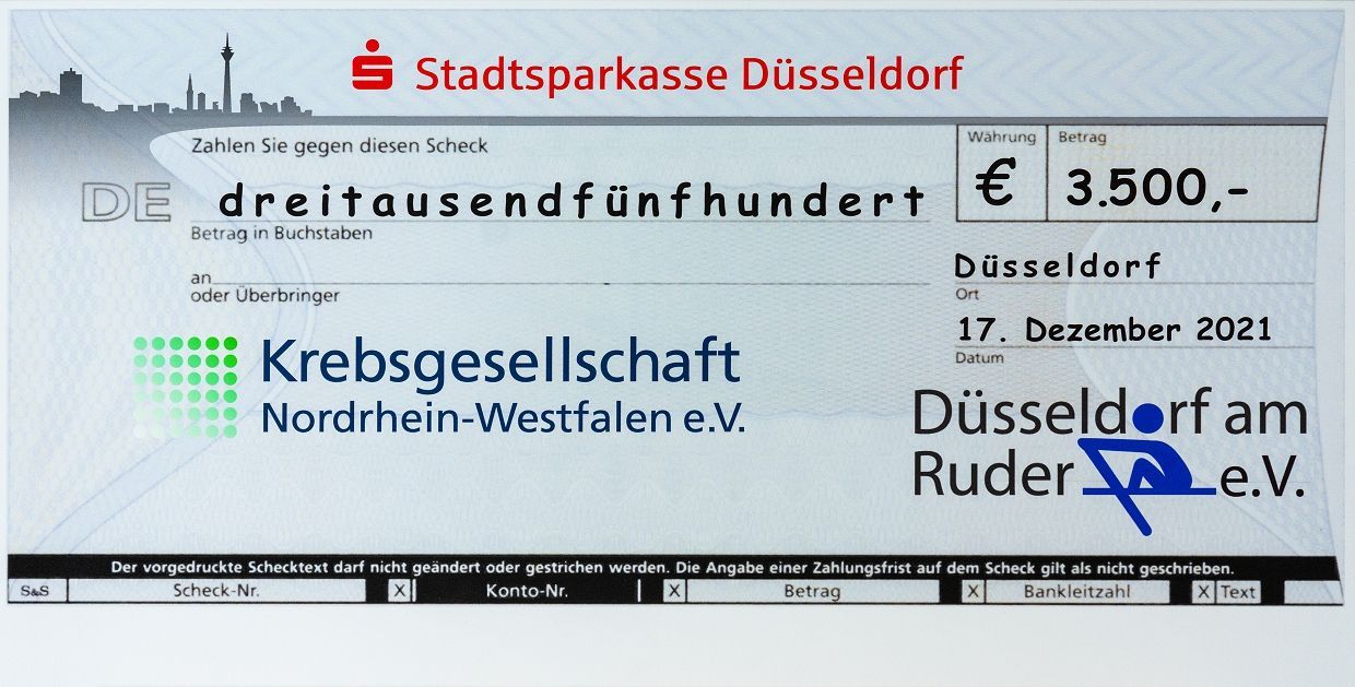 Die Unternehmergruppe Jan Wellem im Verband Empfehlenswerter Unternehmer (VEU) hat am 21.11.2024 einen Scheck über 2.500 EUR an Düsseldorf am Ruder – für Menschen mit Krebs übergeben.