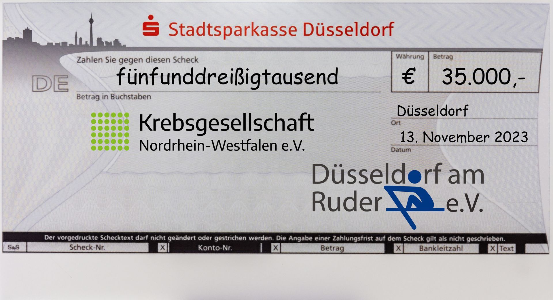 Die Unternehmergruppe Jan Wellem im Verband Empfehlenswerter Unternehmer (VEU) hat am 21.11.2024 einen Scheck über 2.500 EUR an Düsseldorf am Ruder – für Menschen mit Krebs übergeben.